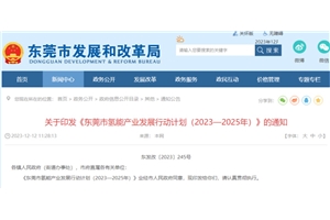 12月12日,东莞市发展和改革局发布《东莞市氢能产业发展行动计划(2023—2025年)》的通知,其中指出,到2025年,力争示范应用燃料电池汽车900辆,建成加氢站20座。 原文如下: 关于印发《东莞市氢能产业发展行动计划(2023—2025年)》的通知 东发改〔2023〕245号...