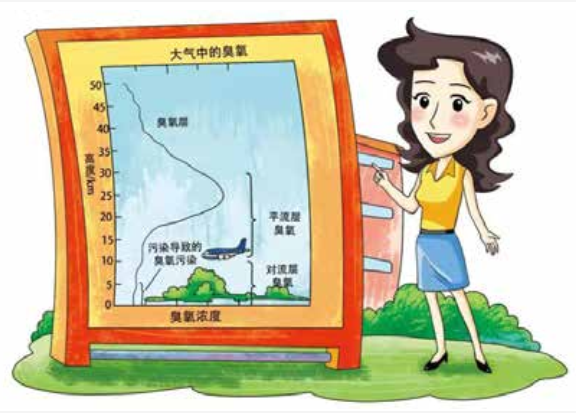 臭氧普遍存在于从地面到50千米的地球大气中,其中大部分集中在距离地面10-30千米的平流层中,仅有10%左右的臭氧存在于距离地面较近的对流层大气中。