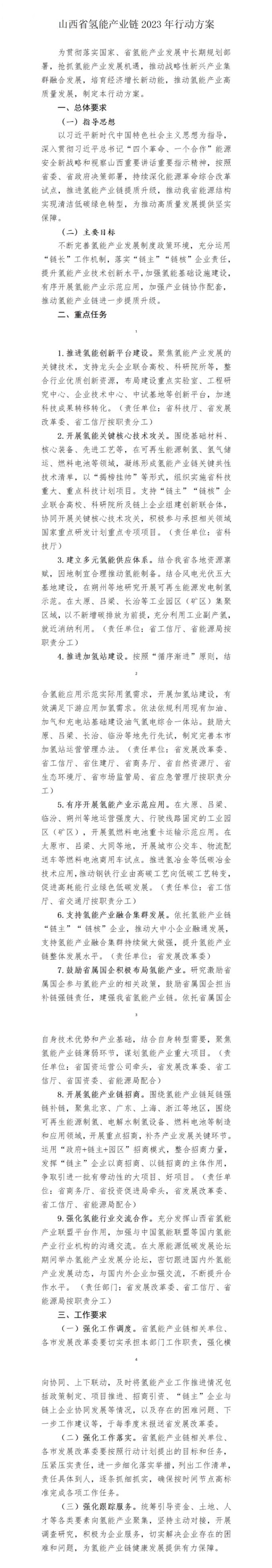 4月21日,山西省发改委发布关于印发《山西省氢能产业链2023年行动方案》的通知。