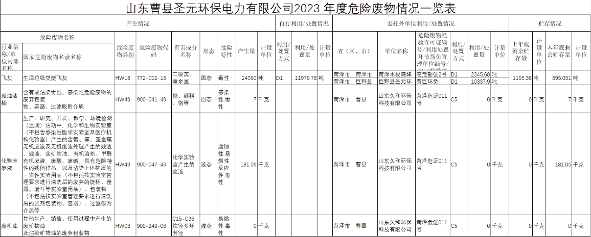 曹县williamhill中文官网危废信息公示