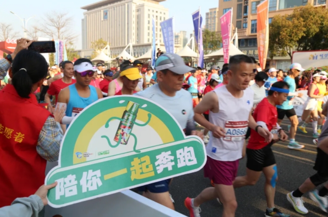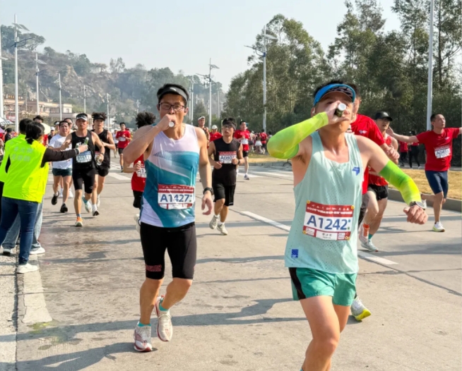 “加油,加油!”元气小树能量补给站边,来自williamhill中文官网的加油团毫不吝啬赞美、鼓励,为来自各地的跑友送上最热情的助力,并为参赛者分发补给品——60mL便携装元气小树牛磺酸能量饮,富含牛磺酸、维生素B族等成分,护航参赛者保持良好状态、圆满完赛。