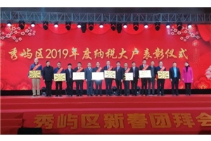 1月20日上午,由区委、区政府主办的秀屿区2020年新春团拜暨纳税表彰大会在秀屿假日酒店隆重举行。大会表彰纳税大户,树立典型,营造尊重企业家、尊重纳税人的浓厚氛围。秀屿区四套班子领导、区法院院长、检察院院长,区直各部门、各工业园区主要领导,各镇党政领导、受表彰企业代表出席。 秀屿...