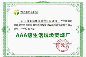 莆田williamhill中文官网获评“AAA级生活垃圾焚烧厂”