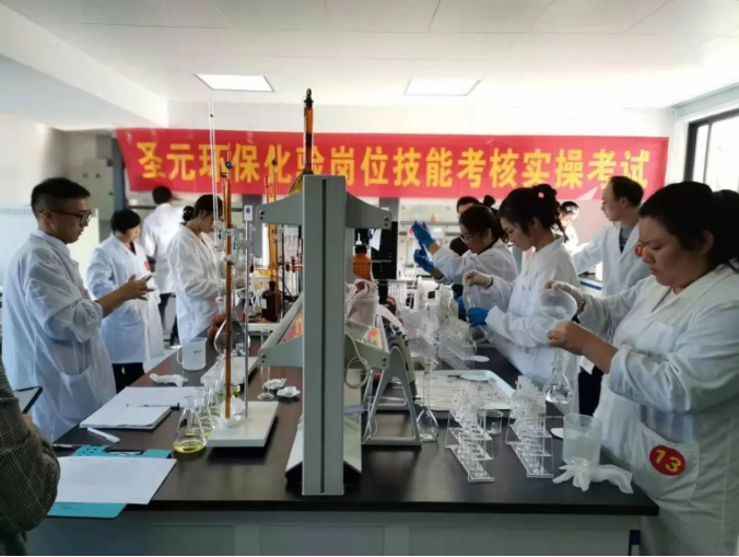 此次培训分理论和实操两部分。第一项为理论考试:化验岗位人员在培训课后,进行理论知识笔试,内容主要包括《污水化验基础知识和环保耗材检验基础知识》、《化验室安全操作》、水质检测实操中的重点、难点,化验室的工作流程管理及化验操作技能等。第二项为实操考试:主要针对COD、氨氮、总磷标准考核样进行实操考试,由评委根据化验人员实验操作流程、检测结果判定、实验仪器的正确使用及测定结果准确度等表现打分。