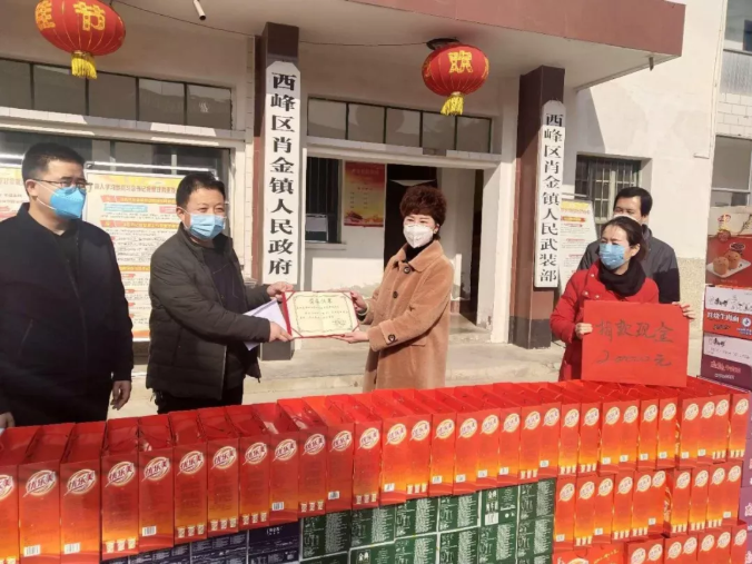 向肖金镇政府捐款捐赠现金和物资共计3万元