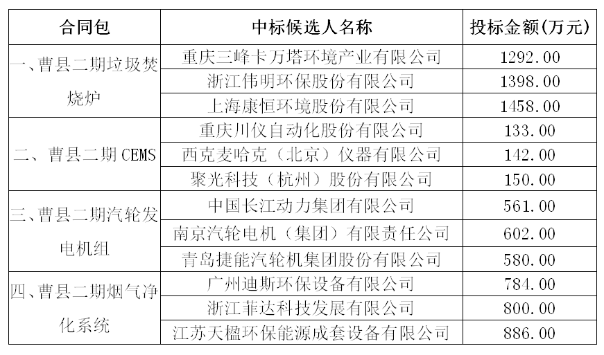 招标项目名称:williamhill中文官网曹县生活垃圾焚烧发电厂二期工程垃圾焚烧炉、CEMS、汽轮发电机组、烟气净化系统采购项目