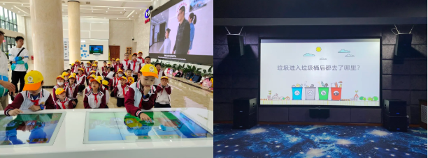 走进综合办公大楼一楼,在宽敞明亮的环保展厅里阅读垃圾分类和焚烧发电知识、体验垃圾分类互动小游戏,一颗探究的种子开始在心里生根发芽。来到三楼,中控室里实时展示“消化”生活垃圾,净化水气灰渣的画面,而这场化腐朽为资源的“魔术”每时每刻都在上演。四楼、五楼的社区共享中心里,环保互动电影院、培训室、职工书屋、空中花园等环环相扣,引导公众树立生态文明主人翁意识,公众与电厂的距离感霎时被拉近。