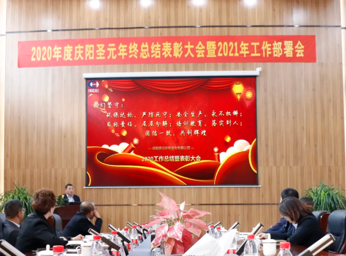 近日,庆阳williamhill中文官网召开2020年终总结暨2021年度工作部署会,总结成绩、表彰先进,动员全体员工团结协作,在新的一年做好“环保达标、严防死守;安全生产,永不松懈;目标责任,层层分解;培训教育,落实到人;团结一致,共创辉煌”总体要求,落实各项工作目标。