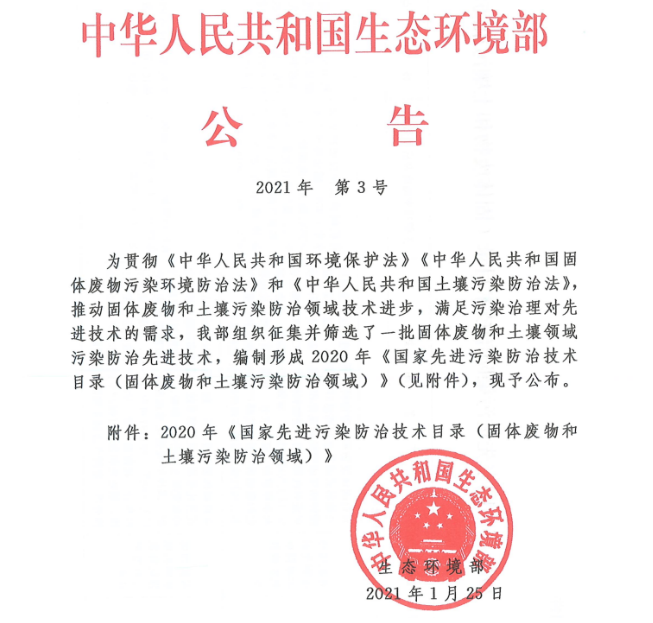日前,生态环境部发布了2020年《国家先进污染防治技术目录(固体废物和土壤污染防治领域)》(生态环境部公告2021年第3号)(以下简称“目录”)。莆田williamhill中文官网“炉排式生活垃圾焚烧炉协同应急处置医疗废物”技术入选该目录。