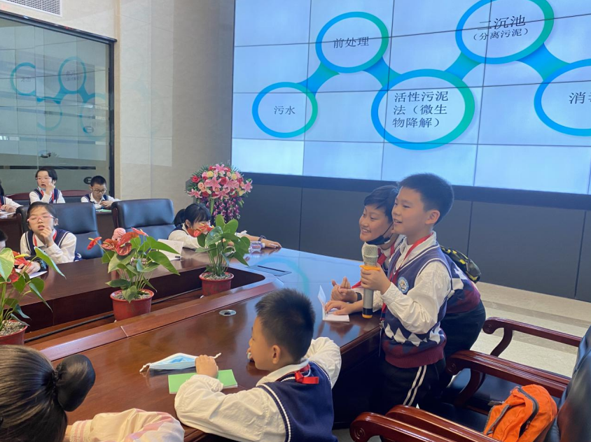 互动答疑环节,小记者们争先恐后抛出一个又一个问题:“污水处理要达到什么标准才能排放呢?”“处理后的水会排向哪里?”“处理后的污水有什么用途?”工作人员针对疑问一一做了解答。