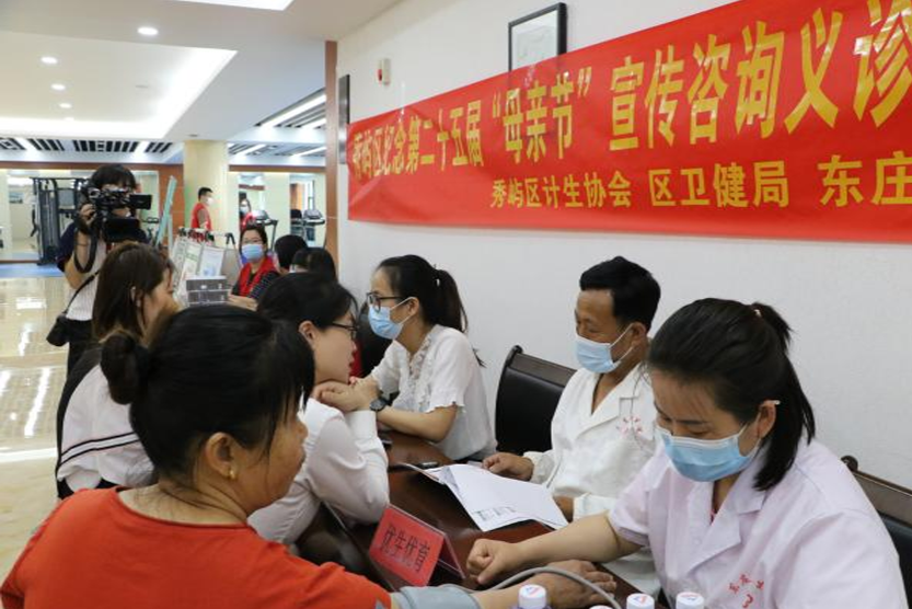 现场还设立咨询台,由区计生协会、卫健局、区医院及东庄卫生院组成的志愿队为计生母亲进行健康义诊及健康咨询,宣讲计生政策法规、家庭健康知识、防范电信诈骗等知识,同时向计生母亲每人赠送一支康乃馨,表达节日的祝福。