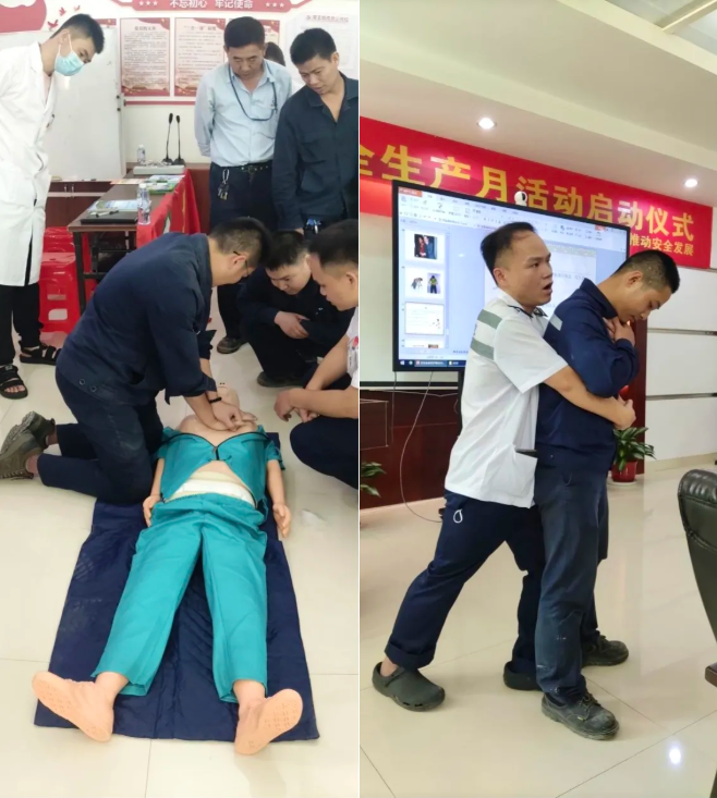 讲座上,李维义医师为大家详细讲解了职业病的定义、危害和防治对策等,让广大员工进一步了解职业病。胡远扬医师将理论与实操相结合,展现心肺复苏和海姆立克急救法的操作要点和注意事项。员工们专注听讲,并在人体模型身上进行弯腰、按压、吹气等急救步骤,现场气氛十分活跃。参训员工表示,公司会定期举办现场急救培训,学习巩固这些知识和技能能在生死一线的关键时刻救人一命,所以要好好学、认真练。