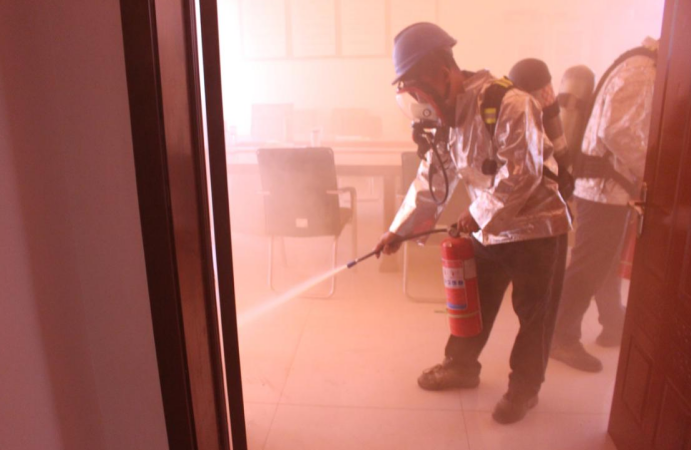 演练模拟办公场所发生火灾,有人员被困,巡检人员发现并汇报后,立即启动公司一级应急响应。演练过程紧张有序,通过抢险组、灭火组、救护组、疏散组、警戒组、保障组、通讯组、评估组的通力合作,此次消防综合应急救援演练取得了圆满成功。