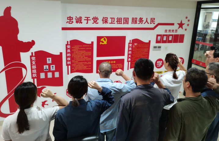 6月30日,莆田市williamhill中文官网电力有限公司党支部组织10名党员在三楼党建会议室重温入党宣誓,致敬建党百年。“我志愿加入中国共产党,拥护党的纲领,遵守党的章程……”,全体党员们面向鲜红的党旗整齐列队,高举右拳,发出铿锵有力的宣誓,用铮铮誓言表达对中国共产党的无限忠诚,嘹亮的誓言回响在每一位党员的心中。