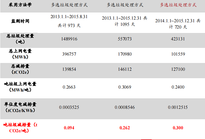 表:焚烧项目的每吨垃圾温室气体减排量有较大差异