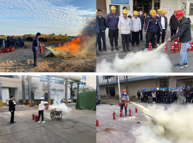 应对火灾,正确使用消防设备是关键。为此,各安环专工现场讲解灭火器种类、操作规范及紧急疏散逃生方式,并介绍公司消防设施布置情况。随后示范灭火器、正压式呼吸器的正确使用方法,组织每位员工进行现场演练,及时纠正操作有误的同事,确保每位员工都能掌握最基本的安全技能,有效提升应急处置能力。
