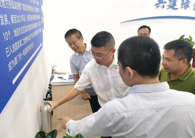 6月30日,林东廓总经理一行考察龙岩市上杭县蛟洋工业园区,与上杭县副县长张永湘、园区管委会领导了解当地产业和企业现状、投资优惠条件以及产业扶持政策等。并先后走访了福建新安科技有限责任公司、福建德尔科技股份有限公司、福建常青新能源科技有限公司等多家企业,向企业负责人详细了解企业生产情况、未来发展、氢气产量、上下游工艺及合作意向等。