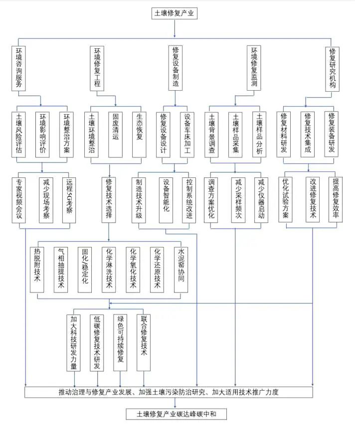目前,为实现“双碳”目标,环保产业正在进行相应优化调整。例如,在水处理行业,基于资源回收、能源开发与利用和碳平衡理念的未来污水处理厂在领先的环境公司已经开始实践;在大气治理领域,提出了碳排放与大气污染物的协同控制。并且将通过在重点行业、企业开展示范试点,进行减排技术/措施的协同控制效果评估;在土壤治理领域,聚焦到土壤修复产业中,恢复土壤碳库容量,减少土壤修复过程中的能源消耗、碳排放等;在固废处理处置领域,开发了提高生产效率,开展节能降耗改造,资源综合利用的减碳技术路径。
