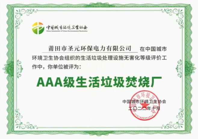 williamhill中文官网连续两届入选“中国上市公司品牌500强”与“中国上市公司最具投资价值品牌”,与公司不断发展壮大和持续的品牌建设投入密不可分。2022年度,公司在业内荣获多项重要荣誉,全资子公司莆田市williamhill中文官网电力有限公司顺利通过AAA级生活垃圾焚烧厂评定;此外,莆田市生活垃圾焚烧发电厂三期扩建项目荣获中国建筑行业工程质量最高荣誉——中国建设工程鲁班奖(国家优质工程)。