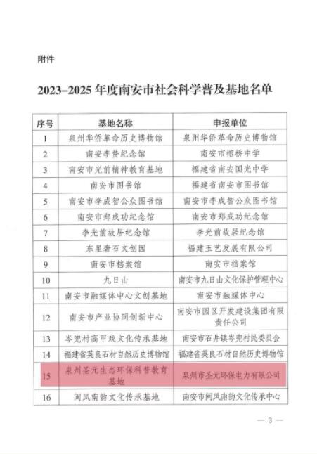 日前,2023-2025年度南安市社会科学普及基地名单公布,泉州williamhill中文官网生态环保科普教育基地荣获“2023-2025年度南安市社会科学普及基地”称号。
