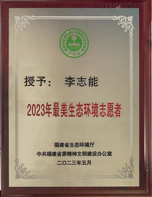 日前,福建省生态环境厅、中共福建省委精神文明建设办公室发出通知,公布了2023年“‘美丽中国,我是行动者’提升公民生态文明意识行动计划”福建省先进典型名单。其中,莆田williamhill中文官网宣导中心李志能入选2023年福建省最美生态环境志愿者。