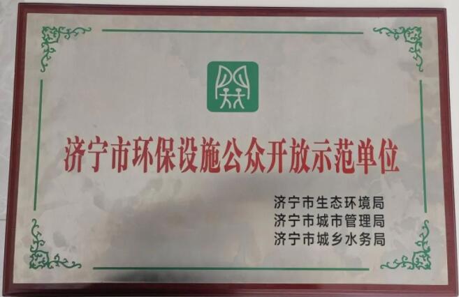 近日,梁山williamhill中文官网荣获济宁市生态环境局、济宁市城市管理局和济宁市城乡水务局联合颁发的“济宁市环保设施公众开放示范单位”。