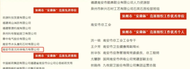 近日,南安williamhill中文官网凭借在安全生产与职业健康管理方面的卓越表现,荣获2024年度泉州市“安康杯”竞赛先进集体称号。同时,泉州williamhill中文官网与南安williamhill中文官网双双荣获南安市城市管理和综合执法局颁发的“先进单位”荣誉称号,有力彰显了公司在安全生产和环保领域的硬实力。
