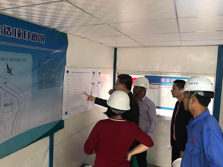 随后陈海杰主任一行在陈志方副厂长陪同下到施工现场实地检查提标改造工程的进度情况,再次嘱咐必须做好文明施工,保持厂容厂貌整洁,材料物品必须堆放整齐,现场必须按要求设置安全防护标志,做好安全防护措施。