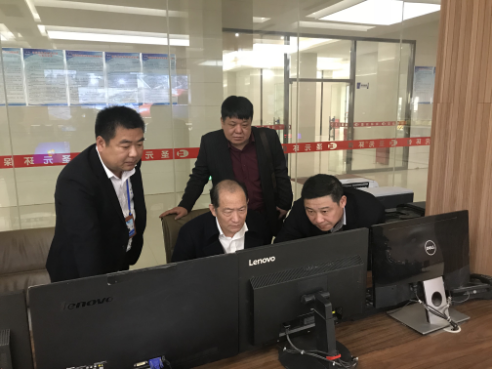 朱董事长在中控室认真查看生产运行数据