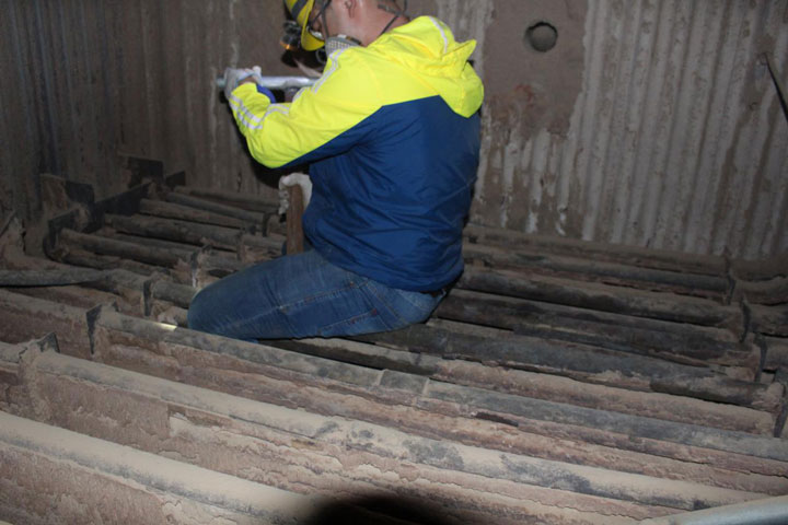 检修人员在锅炉烟道里作业