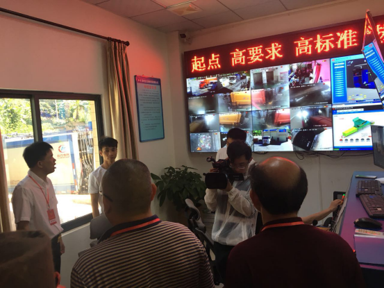 在现场,黄金福厂长介绍了转运中心的运营情况、相关环保管控措施等,同时带领大家参观了地磅房、转运车间、中控室,并通过实时监控视频讲解垃圾压缩处理转运操作流程。