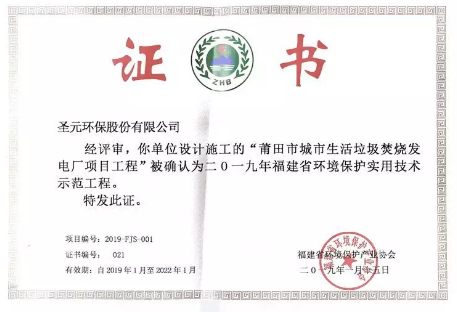 近日,中国环境保护产业协会正式发布《2018年重点环境保护实用技术示范工程名录》(中环协〔2018〕319号),莆田williamhill中文官网垃圾焚烧发电厂项目工程凭借技术成熟先进、运行良好稳定、环境友好、管理完善等优点,获得评审专家的高度认可,成功入选中国重点环境保护实用技术示范工程名录(2018年),为全国唯一一家入选《名录》的垃圾焚烧处理的示范工程。