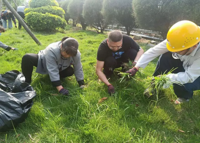 随着雨季临近,厂区内的绿化带杂草丛生,影响厂容厂貌。工会领导部署具体分工后,带领员工亲自动手,对宿舍楼门前到厂区大门的绿化带进行清理。大家不顾天气炎热,戴着手套,挥汗除草,分区域对绿化带草坪进行修整。整个劳动场面热火朝天,井然有序。经过2个小时的辛苦劳作,绿化带内的杂草基本清除干净。看到厂区面貌焕然一新,大家都露出了会心的微笑。