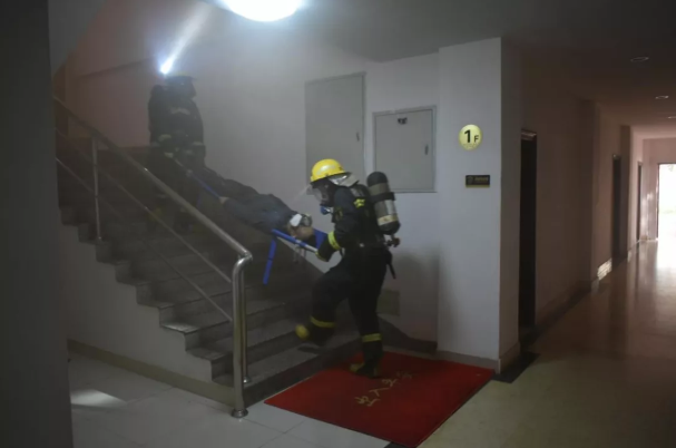 此次消防演练主要模拟并演示宿舍发生火灾后,员工如何自救逃生、使用消防器材及扑灭初起火灾。演练现场,员工用湿毛巾或手捂住口鼻,迅速有序地弯腰从宿舍楼撤离,到达紧急集合点。